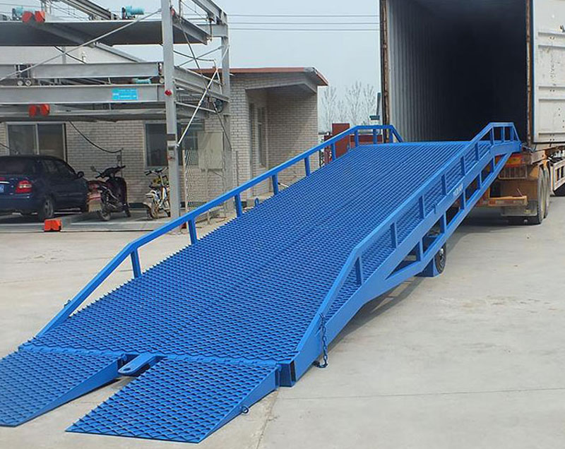 移動式液壓登車橋的可移動性,可滿足在不同場地進行裝卸作業(yè)。由高度錳鋼矩形管制作的承重梁,有著極高的剛性。坡面采用齒形鋼格板制作,具胡卓越的防滑性能。機身材料經過拋丸除銹處理,并采用耐腐涂料油漆,具有更好的耐銹效果。移動式登車橋采用手動泵作為起升動力,不需外接電源,方便室外使用。移動式液壓登車橋可幅提高物料裝卸速度,保障作業(yè)安全,是現(xiàn)在物流之理想輔助設備。