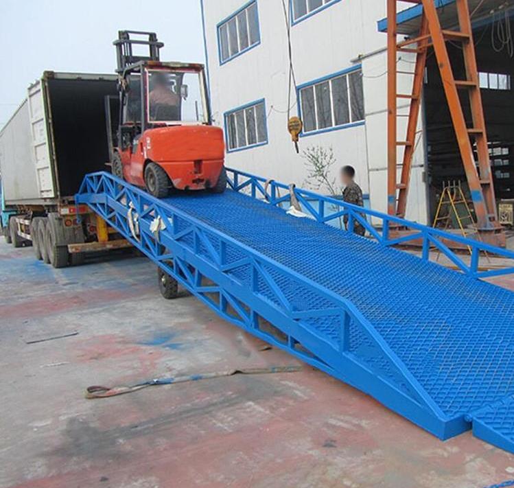 威海登車橋-威海移動登車橋-集裝箱裝卸貨平臺-液壓裝車橋。移動登車橋采用人工液壓動力,不需外接動力電源,只需單人操作,就可以實現(xiàn)貨物的安全快速裝卸,節(jié)省時間和人力資源。它可使企業(yè)減少大量勞動力,成倍提高裝卸作業(yè)效率,加快貨物流通速度,獲取更大經(jīng)濟效益。移動登車橋被廣泛應(yīng)用于無裝卸設(shè)備的貨臺及流動裝卸場所,是與叉車配合使用的貨物裝卸輔助設(shè)備。并可以根據(jù)不同的車型及裝車過程車廂的高度變化進行調(diào)節(jié)。廣泛應(yīng)用于工廠運輸備料、物流集散中心運輸貨物、港口碼頭上下集裝箱,隨著工礦企業(yè)的發(fā)展移動式液壓登車橋越來越被廣泛的應(yīng)用到各行各業(yè)卸貨中。